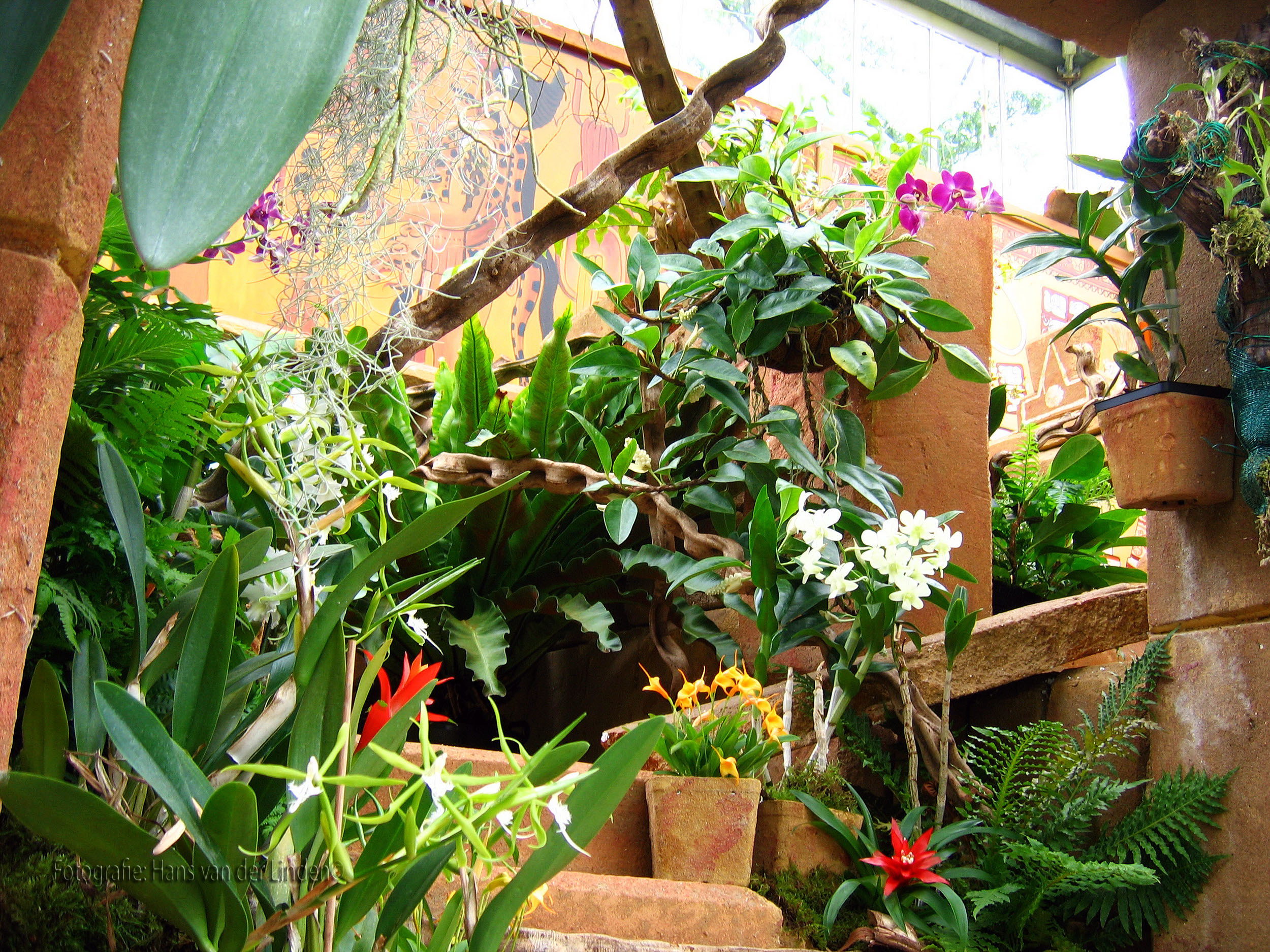 | De varens en palmen worden geplaatst | De azteekse achterwand staat | ||