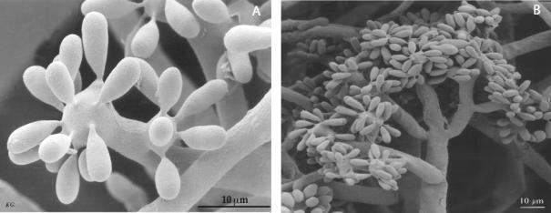 Deze conidiën worden door de hyfen aangemaakt en hebben de vorm van een tros, zoals druiven. zie de foto's boven aan de pagina. Hieruit worden sporen gemaakt en afgestoten . Dit proces werk het beste bij een hoge luchtvochtigheid. De omstandigheden in natte bark zijn dus ideaal.